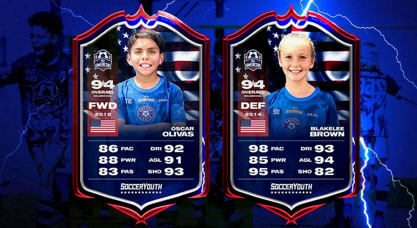 ADD-ON OPPORTUNITY: Our All-American Series locations feature a Player Card Combine during the event allowing the players to participate in six different skill testing stations to determine their stats for their official Soccer Youth Player Card, like what you might see with a FIFA card.