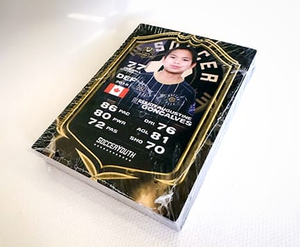Following the completion of all summer events, all player cards (in digital format) are distributed. In addition, a pack of 25 soccer cards featuring your player is made and shipped once completed.