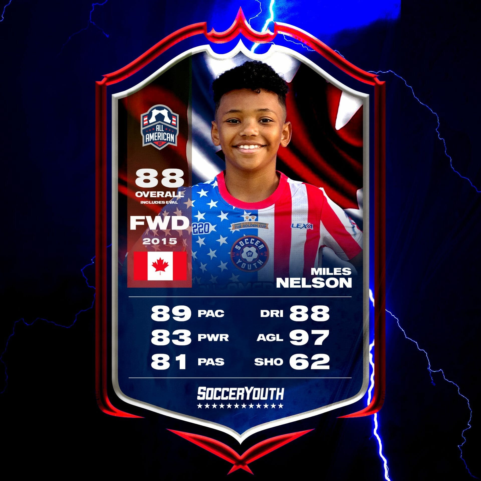U8 Canadian Player, who plays U9 level. - Fast and athletic attack-minded winger. -Excellent! 1v1 ability. -Excellent passing range Trains 6 times a week with professional footballers. - Fast learner -Extremely driven and hard working, football is life not just a hobby. Known for speed/strength and technicality.