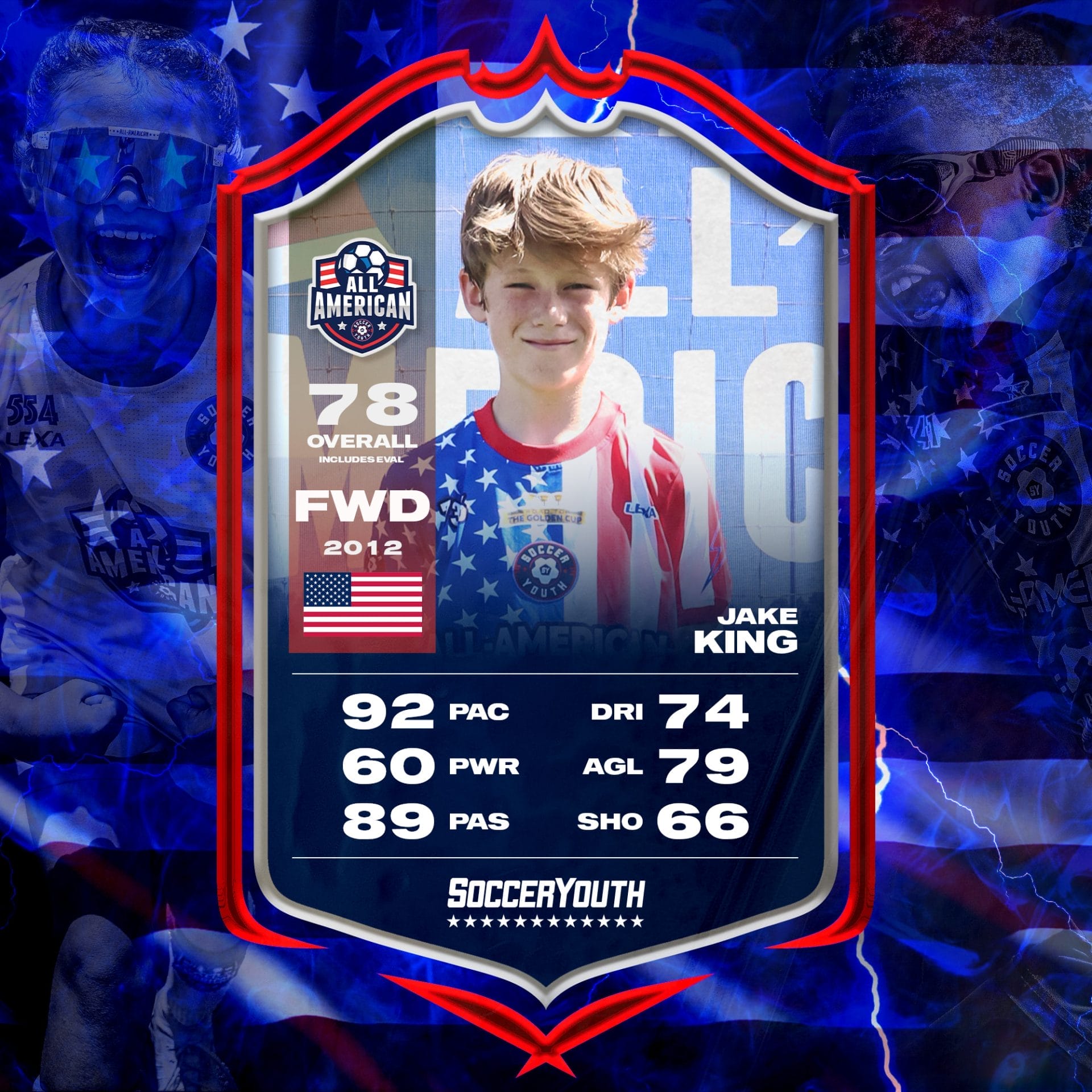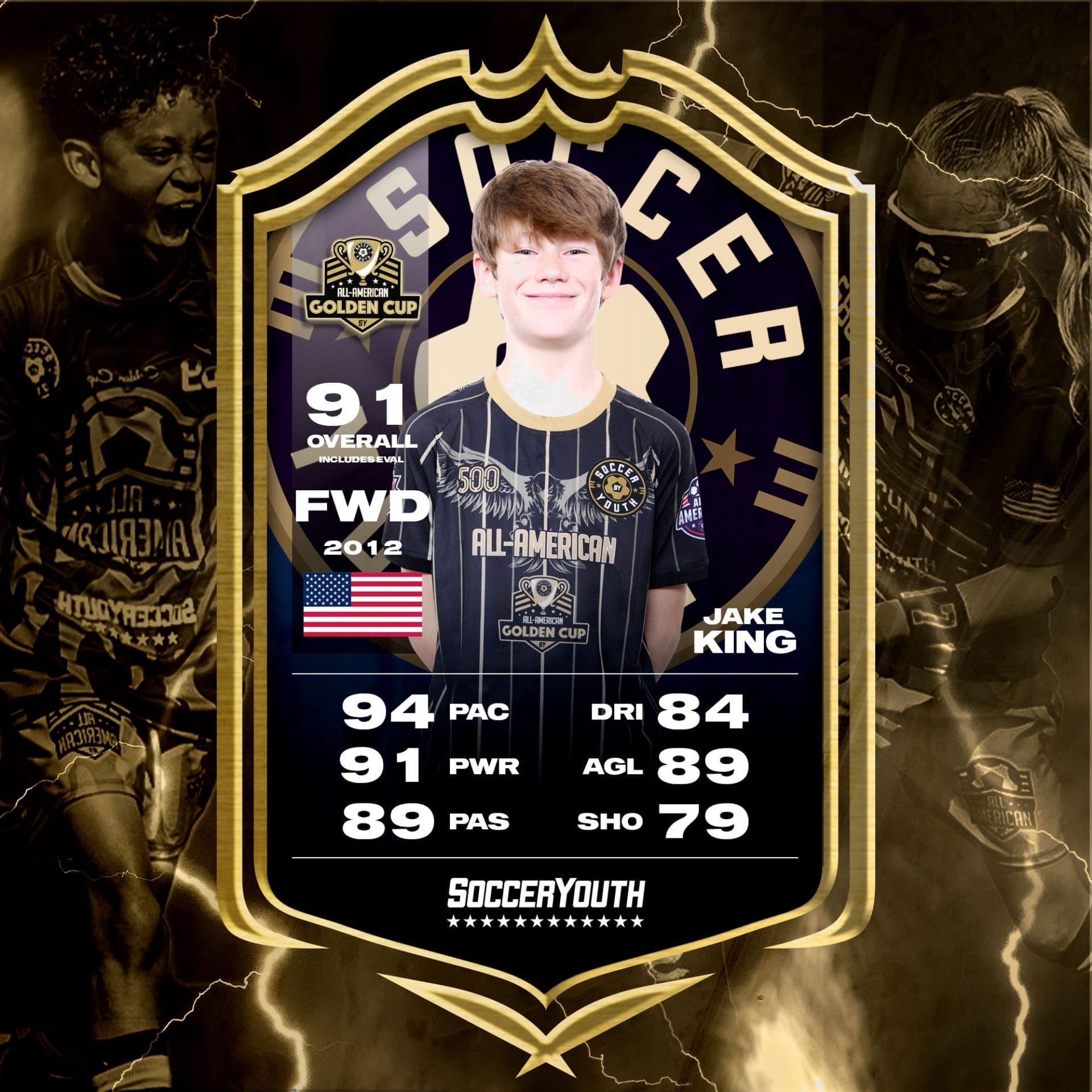 Jake King began playing soccer at the age of 6 and quickly had a love for the sport. He has played on a travel team for 3.5 years. His training included camps and experiences in NC, SC, GA and Madrid Spain. While training in Madrid, Jake was chosen to play in the 2025 Donosti Cup located in San Sabastan Spain.