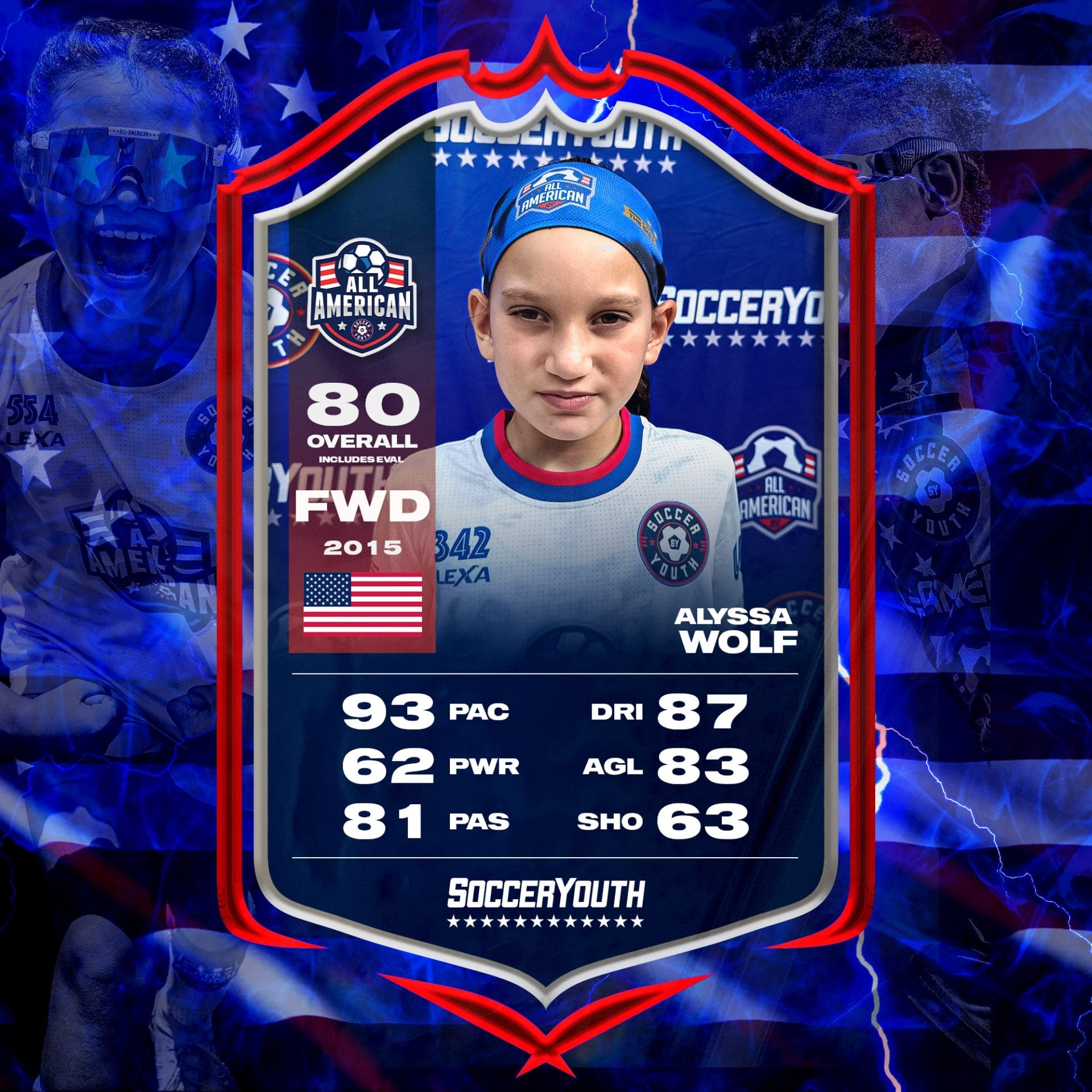 Been playing since 4 years old . Plays on academy team up a year and also on boys teams . Strikes ball with both feet at same pace . Very fast with vision and footwork.