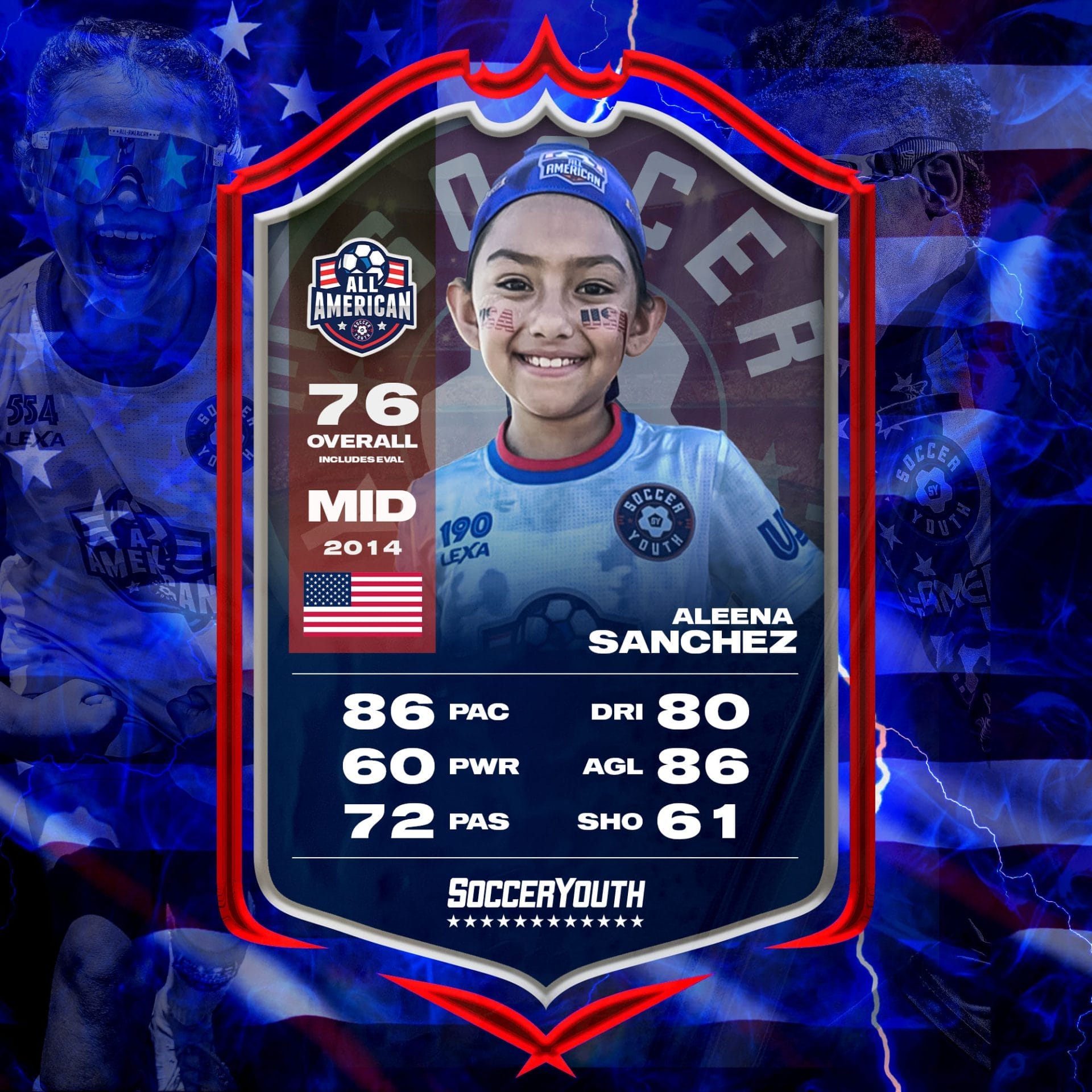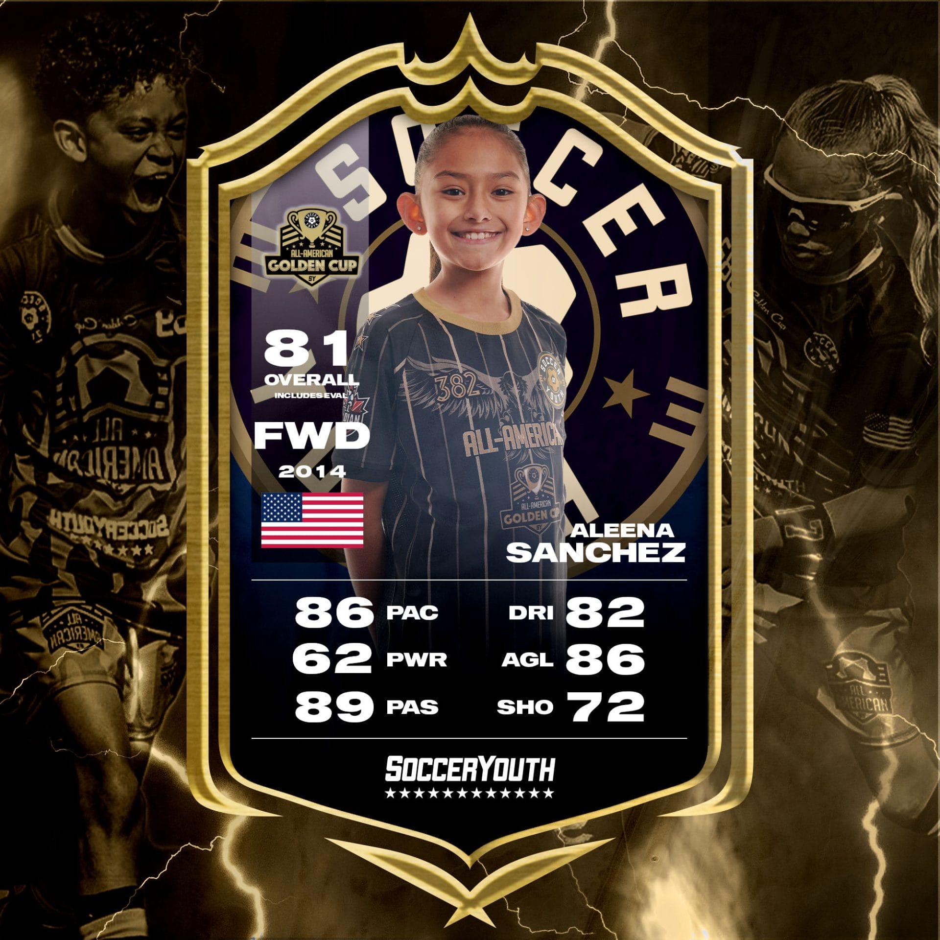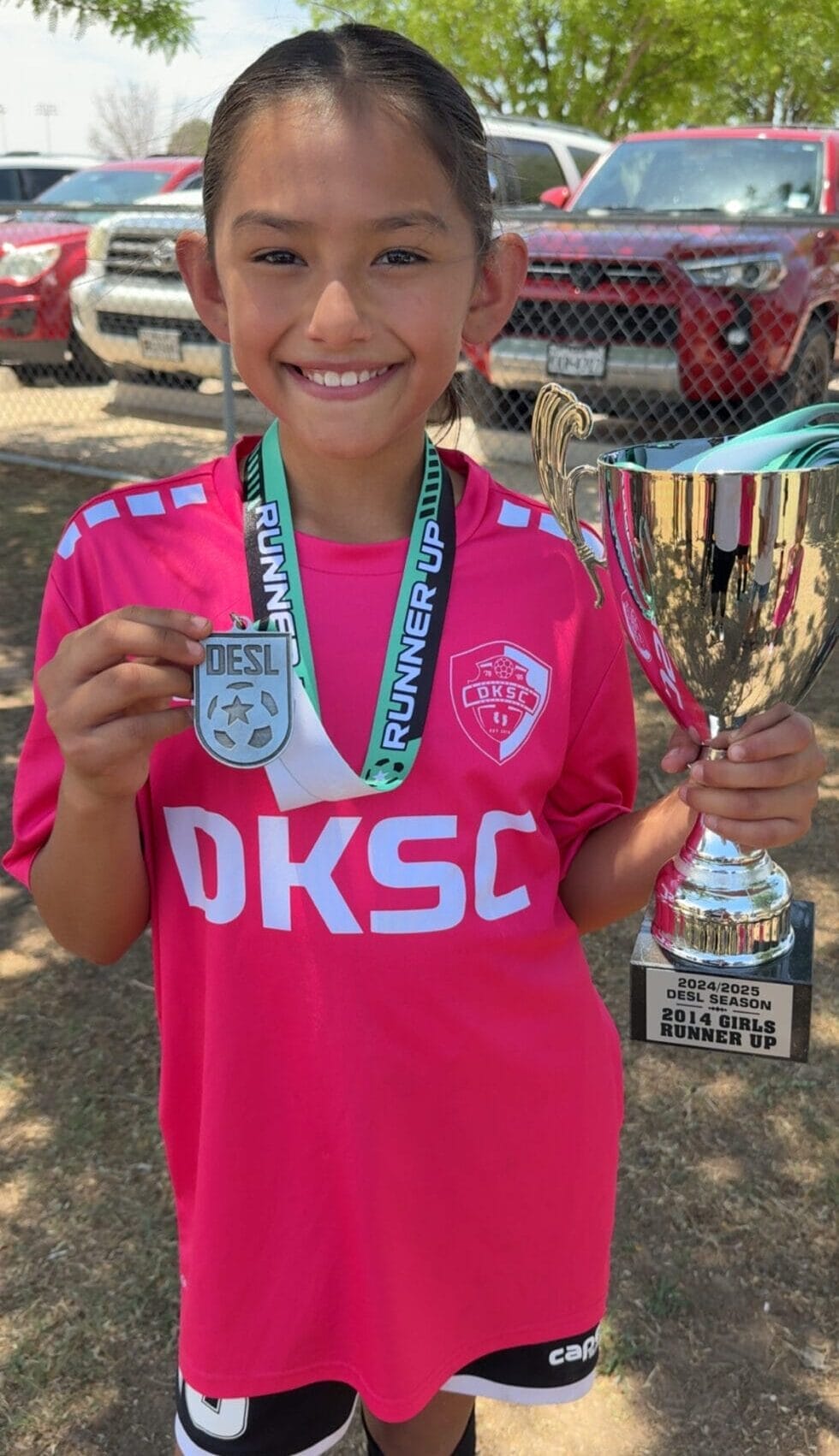 Born in Odessa, TX, Aleena is an 11-year-old soccer enthusiast. She began playing soccer at the age of 4 and has since accumulated extensive experience. Initially, Aleena participated in recreational soccer with the Lady Raiders. She then joined the Odessa Predators for academy training, which later transitioned to BVB International Academy Texas. Throughout her soccer career, Aleena has consistently demonstrated a strong passion for the sport. Her growth has been remarkable, with comprehensive experience playing various positions. Notably, Aleena has played as a goalkeeper when required and has supplemented her training with specialized goalkeeper coaching and personal training sessions. Her primary role is that of a forward/striker, although she is also capable of playing as a midfielder as any other positions phenomenally. She was nominated to play in the Soccer Youth All American in July 2024 in Dallas, TX. Then, was invited to attend the Soccer Youth Golden Cup in December 2024 in Round Rock, TX. Again, she accepted the invitation for the Soccer Youth All American in July 2025 in Round Rock, TX. Aleena has now accepted once again the invitation for the Soccer Youth Golden Cup in December 2025, in Round Rock, TX. Currently, Aleena competes in 9v9 and 11v11 matches with DKSC and exhibits confidence in taking shots whenever possible and her passing skills are improving day by day. Her soccer experience spans numerous national tournaments. Aleena engages in year-round soccer training, driven by her enduring love for the sport.
